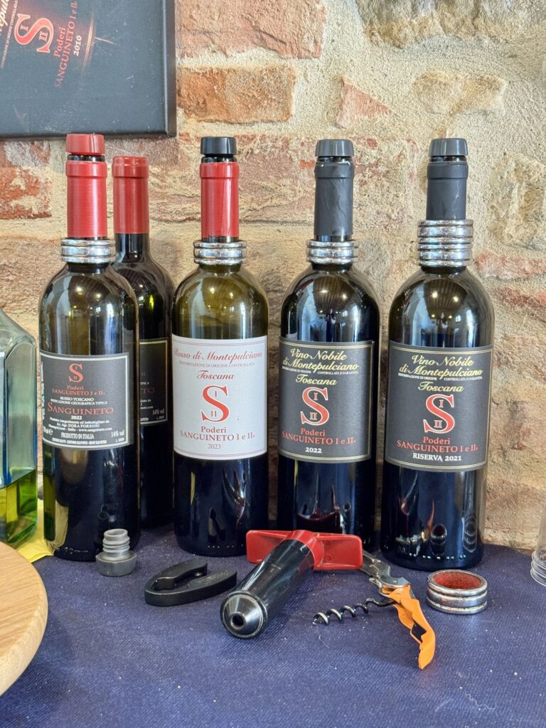 Ho avuto la fortuna di visitare questa realtà grazie all’amica Augusta Boes, che mi ha aperto la porta su un mondo di autenticità e passione. Durante la visita ho avuto la fortuna di assaggiare vini che raccontano, ciascuno a modo suo, l’anima di Poderi Sanguineto: