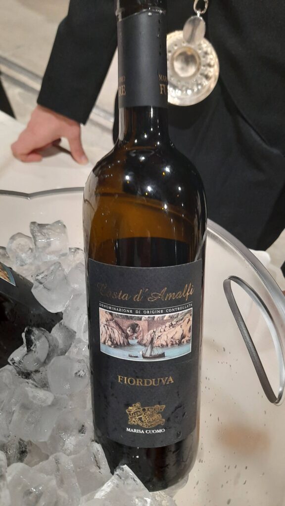 Costa d’Amalfi Furore Bianco Fiorduva 2023 Marisa Cuomo – Dorato brillante, libera sentori di pesca, melone, litchi, cedro e miele. Un piccolo capolavoro della “Divina Costiera”.