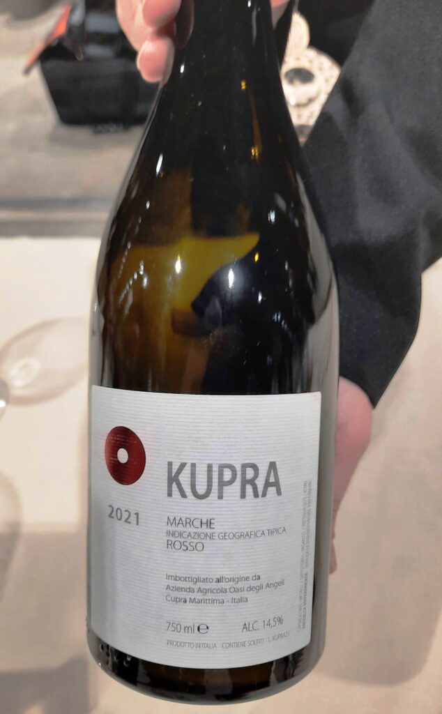 Kupra Marche Rosso Igt 2021 Oasi degli Angeli – Color granato intenso, rivela sentori di frutti di bosco, rosa canina, arancia sanguinella, tè e spezie. Palato delicato, dal tannino setoso.