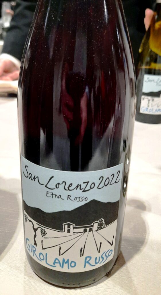 Etna Rosso San Lorenzo 2022 Girolamo Russo – Nerello Mascalese e un piccolo saldo di Nerello Cappuccio – Rubino intenso, emerge un pot-pourri floreale, frutti di bosco e spezie, con lieve nota affumicata sul finale. Buona struttura, tannino nobile, lungo e duraturo.