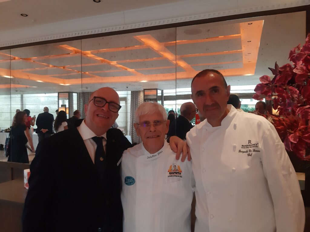 Al centro il Maestro Sabatino Sirica tra il food & beverage manager Giovanni Botta e l’executive chef Pasquale De Simone del Renaissance Naples Mediterraneo