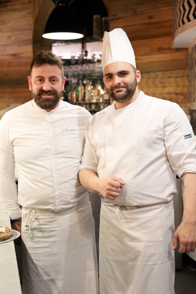 Il menù della serata nasce dalla collaborazione tra il maestro pizzaiolo Fernando Speranza, della pizzeria Saporì, e lo chef Fabrizio De Simone, del ristorante L’Accanto, segnalato dalla guida Michelin e anch’esso parte del Grand Hotel Angiolieri.