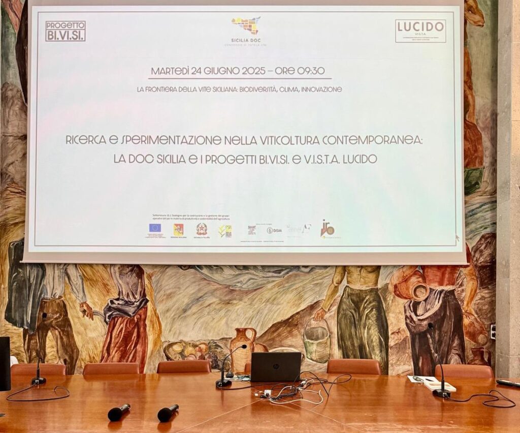 Nel cuore della Sicilia, dove i monti delle Madonie sembrano custodire millenni di storia agricola, l’Università degli Studi di Palermo ha ospitato il 24 giugno scorso un evento di rilevanza nazionale per il comparto vitivinicolo: il convegno organizzato dal Consorzio Sicilia DOC in collaborazione con Wine Meridian, dedicato alla presentazione dei progetti BI.VI.SI e V.I.S.T.A. Lucido.