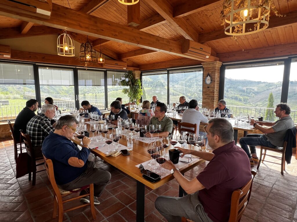 Interessante, prima di partire con i cavalli di battaglia, l’assaggio del Vermentino “Terrablu” nelle annate 2023 – 2021 e 2019 ognuna con la sua storia da raccontare. Polposa e acerba l’ultima nata, incredibilmente fruttata e succosa la mediana e delicatamente agrumata quella con maggior maturità. Adesso fiato alle trombe prima della chiusura finale parlando della visita al Museo Etrusco Guarnacci di Volterra.