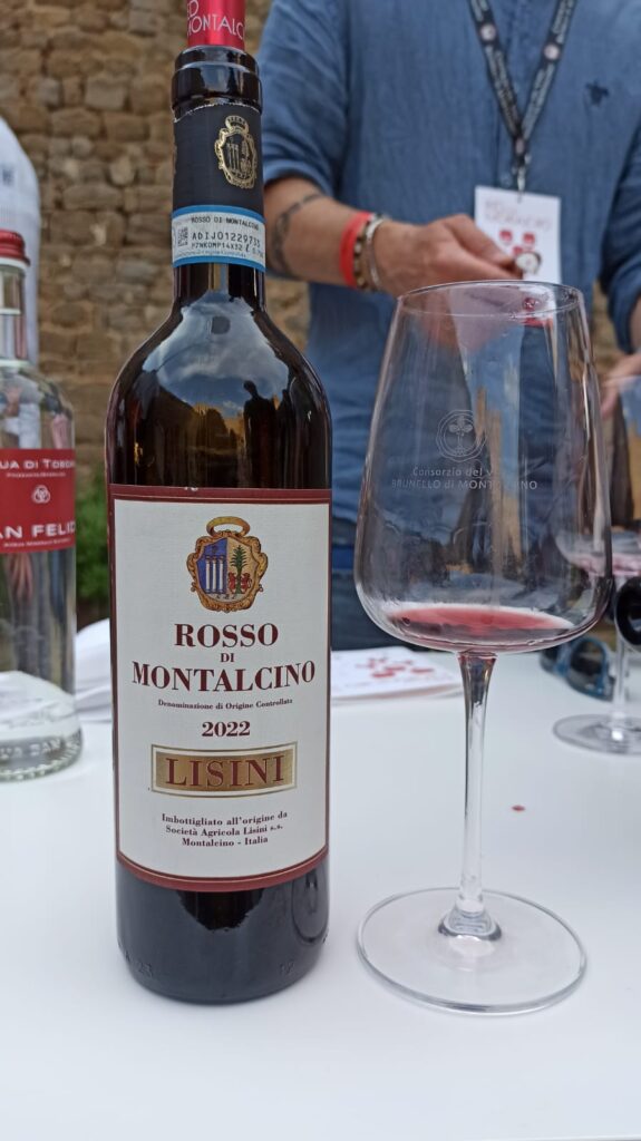 Rosso di Montalcino 2022 Lisini – vinificazione in cemento, affinamento in cemento e botte grande – frutti rossi macerati e fiori viola;