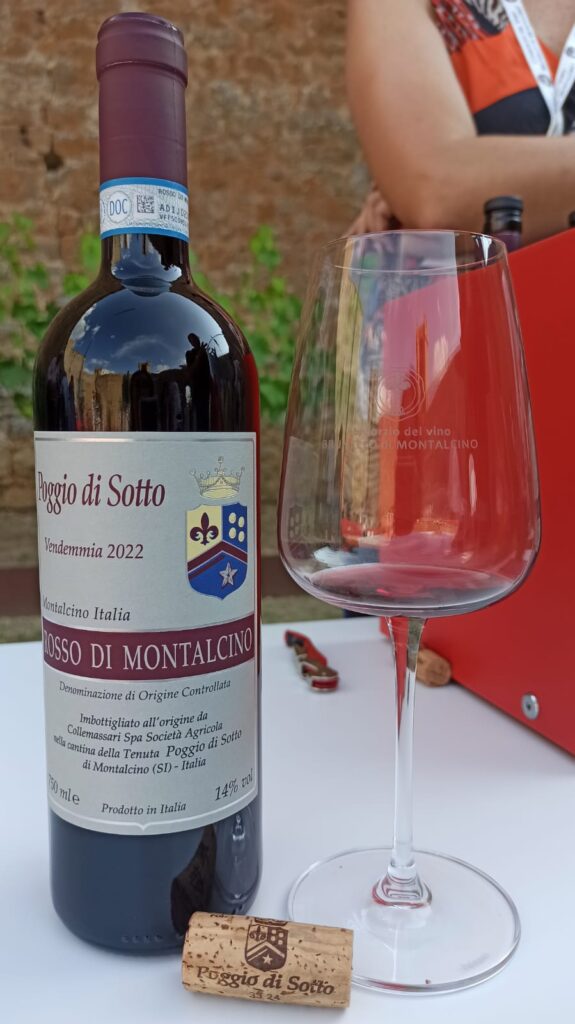 Rosso di Montalcino 2022 Poggio di Sotto – ottenuto dal “declassamento” della massa destinata alla produzione del Brunello, dopo due anni di botte grande; petali di rosa e scorza d’arancia, elegante e sapido;