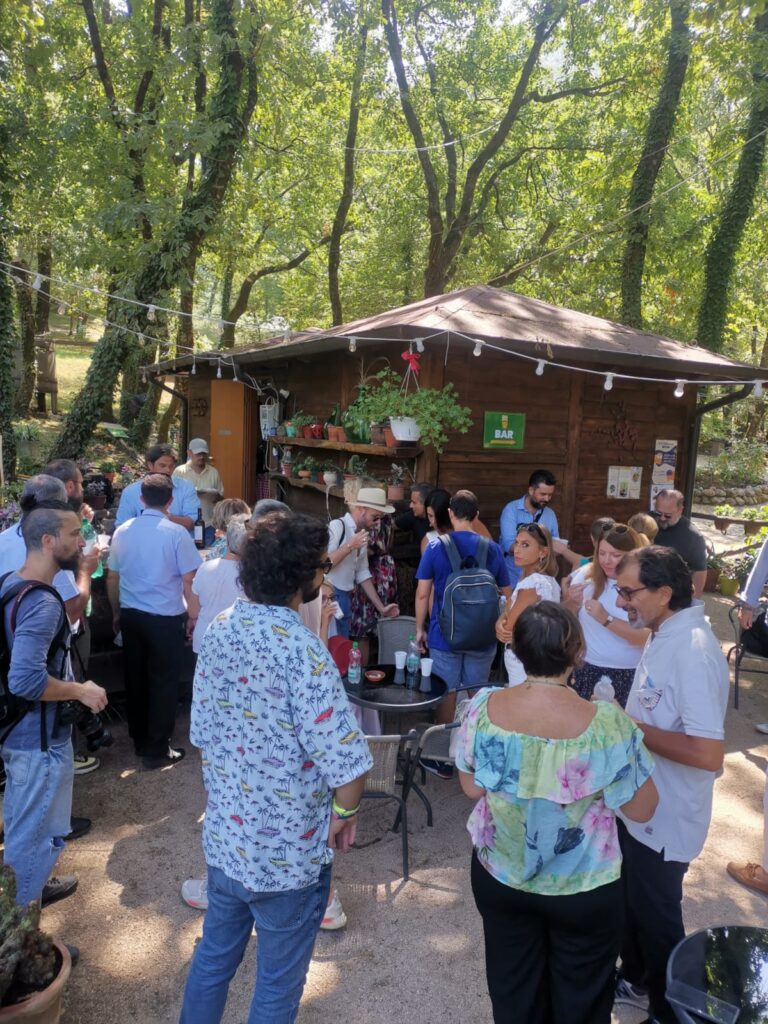 Lungo la camminata per raggiungere la cascata della Madonnella Gilberto ha copiosamente dispensato preziose informazioni e curiosità su castagne e castagneti, biodiversità presente nel Parco, microclima e fauna dell’areale, servizi e funzioni del bioparco; al termine della piacevole escursione un ghiotto spuntino a base di salumi e formaggi della casa accompagnati a un fresco bicchiere di Fiano o di corposo Aglianico irpini sono stati offerti come… amuse-bouche al pranzo che attendeva il gruppo di li a poco.