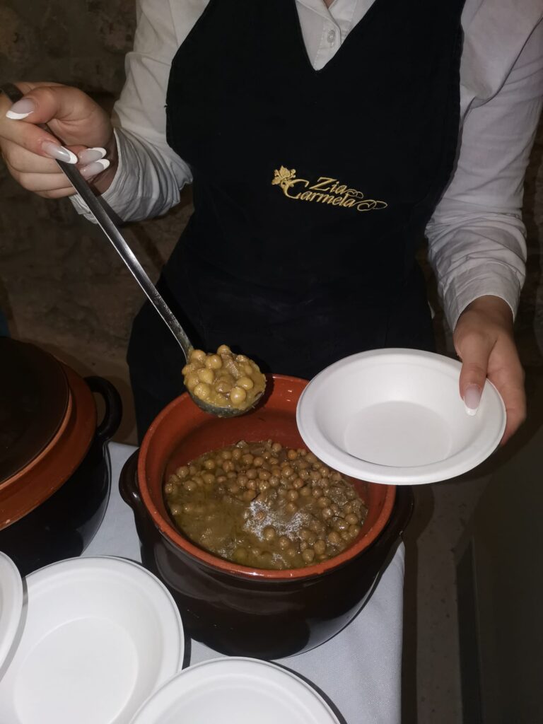 La bellezza mistica ed austera dei luoghi non ha affatto precluso al gusto di un ricchissimo buffet a base di ricette e preparazioni della tradizione popolare, magistralmente curato dal montellese Ristorante Zia Carmela. Indimenticabili, tra gli altri manicaretti, la zuppa di ceci e funghi porcini all’olio extravergine di ravece e il cannolo alla ricotta farcito all’istante.