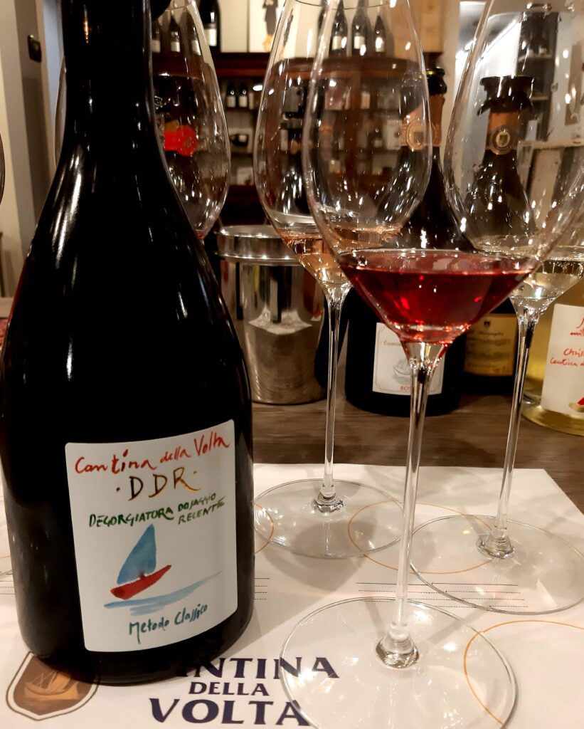 Terminiamo la prima parte dell’articolo con il D.D.R. 2015 da ben 7 anni sur lie. Vigneto allevato con sistema Bellussi, ormai in disuso perché difficile da meccanizzare. Il colore molto tenue degli altri campioni qui si rivela più fitto e scuro con un tannino percepibile in chiusura. Realizzato finora solo in 2 annate: completamente fuori dagli schemi, guarda dritto verso i cugini d’Oltralpe.