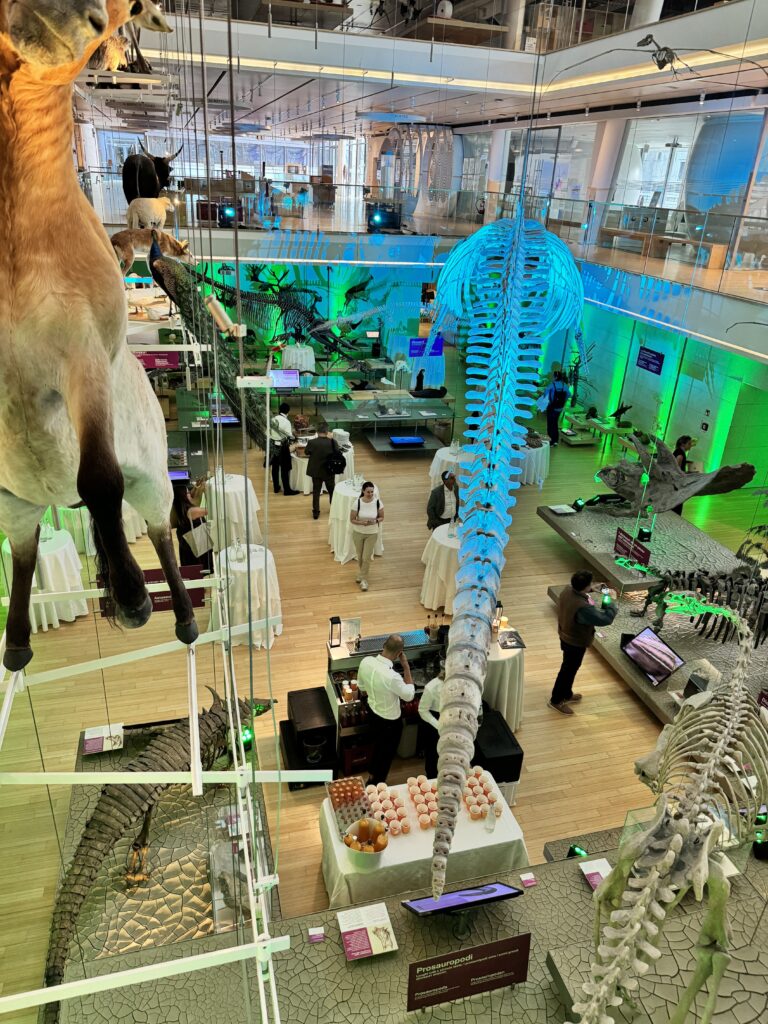 La presentazione del bilancio si è conclusa con un aperitivo e una cena a buffet offerti dal Consorzio nella sala al livello inferiore del museo, accompagnati dai vini del Trentino e dai cocktail con la Grappa del Trentino, il tutto circondati da dinosauri, animali preistorici e oggetti dell’età della pietra, creando una bellissima atmosfera conviviale.