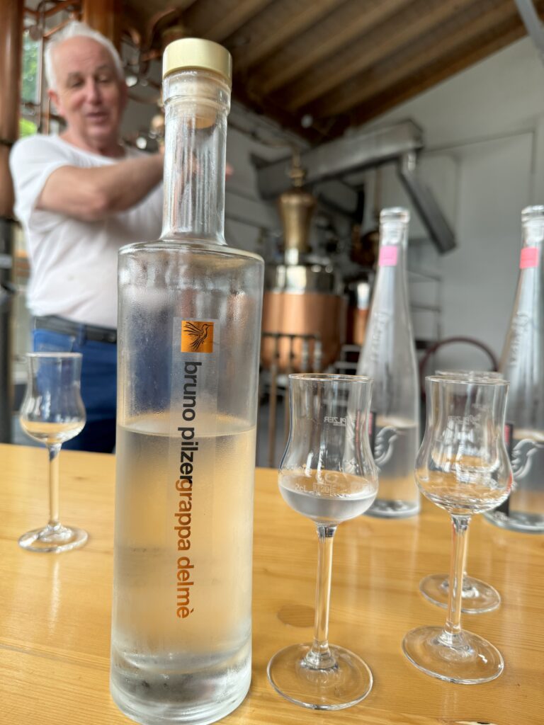 Qui merita un approfondimento la distilleria di Bruno Pilzer Vicepresidente Istituto Tutela della Grappa del Trentino,che produce distillati molto interessanti. Una distilleria a conduzione familiare con il padre che inizia nel 1957 con molte difficoltà fino a quando la conduzione è passata a Bruno che con l’aiuto del fratello ha messo su una azienda che sta riscuotendo un grande successo. L’impianto è rappresentato da due alambicchi discontinui a bagno maria, che dal 2001 ad oggi ha subito alcuni cambiamenti. Le tecniche di distillazione provengono dagli studi fatti dall’Università di Padova e quella del bagno maria rappresenta per Bruno, una metodica più versatile che rispetta la materia prima e consente di avere un ottimo prodotto finale conservando gli aromi tipici delle vinacce utilizzate. Liquori e grappe di grande finezza ed eleganza con una varietà che va dalle grappe morbide, alle invecchiate in barrique, al Gin, Rum e Brandy. Tutti rigorosamente conservati in bottiglia di grande stile e bellezza.