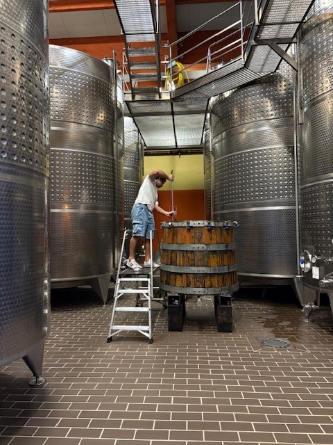 Questa visione, nutrita da esperienze internazionali e da un profondo rispetto per il territorio, prende forma concreta nel lavoro quotidiano in cantina. È qui che la filosofia Bellavista si traduce in pratica, a partire dalla cura meticolosa della produzione. La visita prosegue infatti tra le vasche di fermentazione, dove ci viene raccontato il processo di raccolta manuale delle uve, la selezione dei grappoli migliori e l’evoluzione delle tecniche di vinificazione.