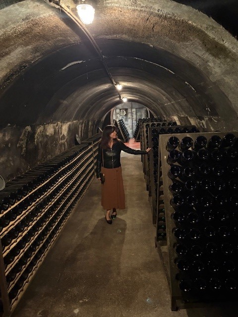 La visita prosegue e scendiamo nella bottaia, uno degli ambienti più suggestivi della cantina. Qui ci vengono spiegate le differenze tra i materiali utilizzati nel tempo e le tempistiche di riposo a seconda della tipologia di vino. Percorriamo le gallerie storiche, scavate nella roccia e dedicate al riposo del vino. Qui, l’ambiente è fresco, silenzioso e perfettamente organizzato: migliaia di bottiglie sono disposte ordinatamente, suddivise per annata e tipologia.