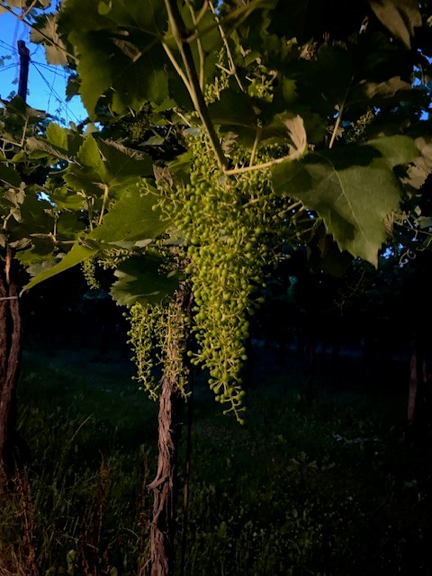 Emozionante la passeggiata sotto le stelle tra i larghi filari della Bellussera, agghindati da catene luminose che creavano uno scenario veramente suggestivo. Un breve cenno sulla Bellussera: antico metodo di coltivazione della vite con disposizione dei tralci a raggiera fino ad un’altezza di 4 metri, diffuso nel territorio del Piave, un sesto d’impianto che crea scenografie uniche, una meravigliosa volta verde.
