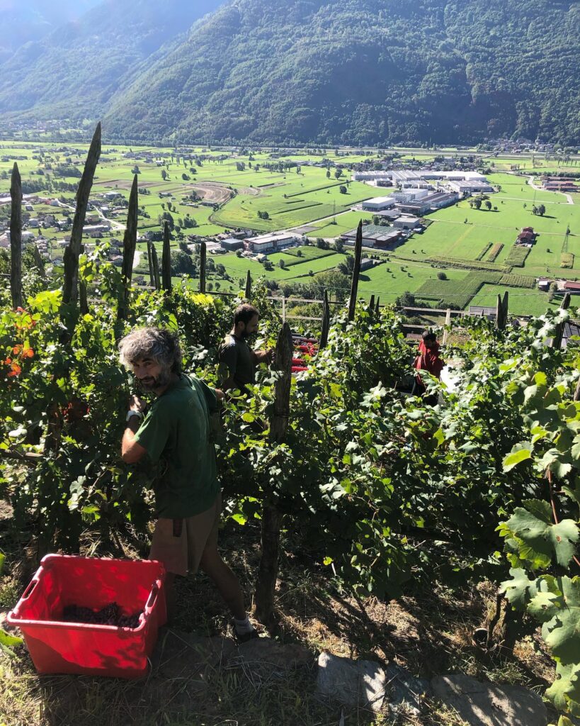 Oggi si estende su circa 2 ettari e produce tre etichette. L’intero processo produttivo è improntato sull’agricoltura biologica, con un forte rispetto per la natura e il territorio della Valtellina. Il Rosso della Valtellina 2022 “Risc” è molto agile alla beva, giocando su visciole mature, humus, noce moscata e chiodi di garofano.
