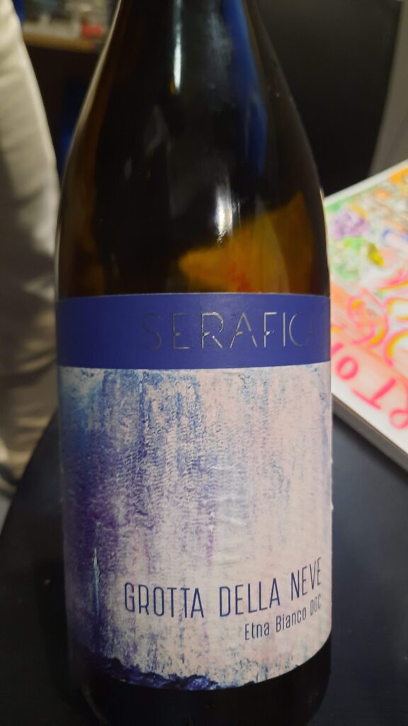 Grotta della Neve Etna Bianco Doc 2021 Tenuta Serafica – Carricante e Catarratto – paglierino luminoso, arrivano al naso note di fiori di ginestra, pera, pompelmo e mentuccia; sorso rinfrescante e persistente dal finale saporito.