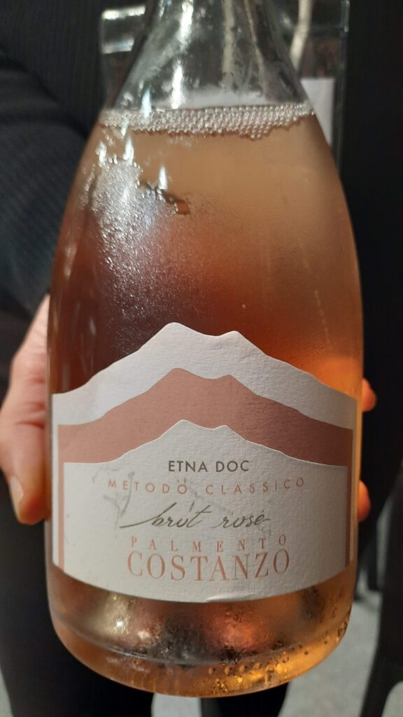 Brut Rosé Metodo Classico Etna Doc Palmento Costanzo – Nerello Mascalese 100% – rosa tenue, perlage fine, libera sentori di fragolina di bosco, ribes e scorza d’agrumi. La freschezza stimola il durevole sorso.