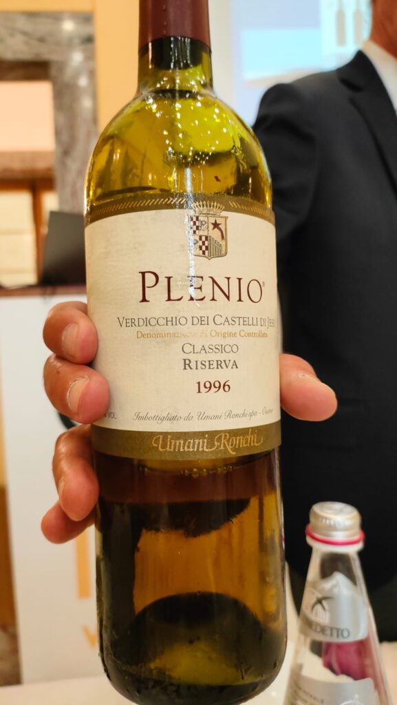 Ma ritorniamo ora alla masterclass : il protagonista era PLENIO, Castelli di Jesi Verdicchio Classico Riserva proposto in 4 annate: 2021 – 2014 – 2008 – 1996.