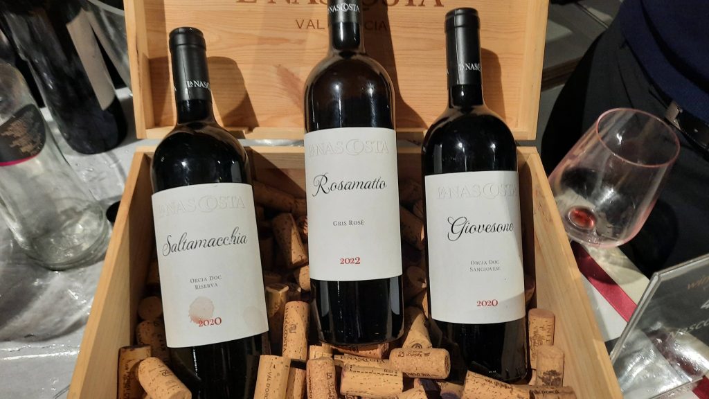 Orcia Doc Sangiovese Giovesone 2021 La Nascosta – Sangiovese 100% – Rosso rubino intenso, dipana sentori di giaggiolo, ciliegia, ribes, mirtillo che si alternano a tocchi più speziati, scivola in bocca setoso, armonioso ed elegante, dotato di una lunga persistenza.