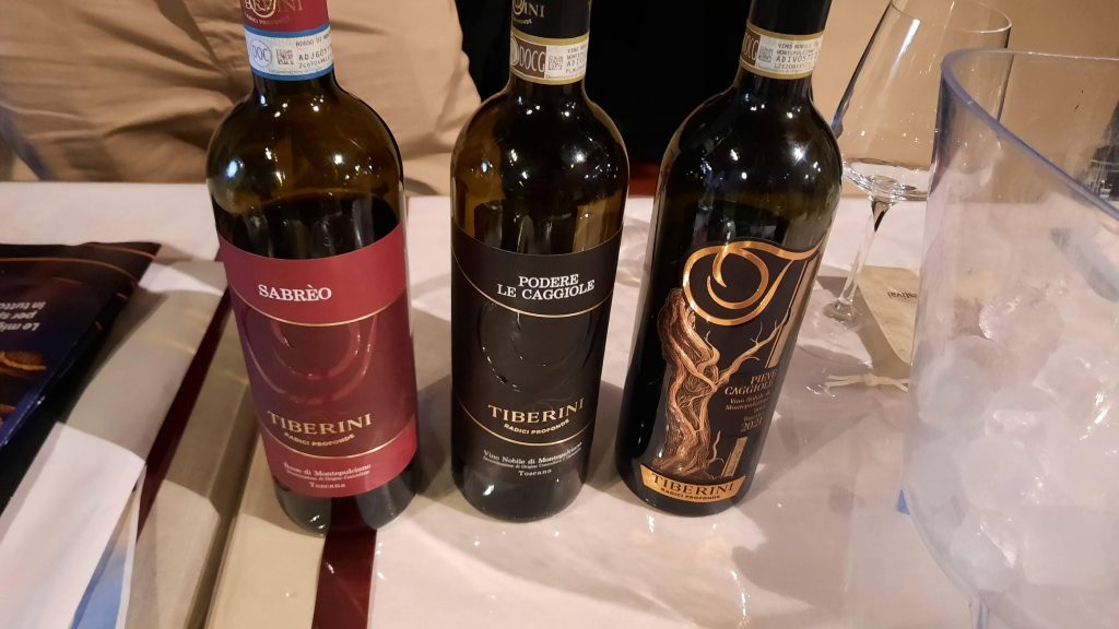 Vino Nobile di Montepulciano Pieve Caggiole 2021 Tiberini – Prugnolo Gentile 90% – Canaiolo Nero 5% – Mammolo 5% -Rosso rubino, con note di violetta, ciliegia, susina, melagrana e un accenno balsamico, al gusto è avvolgente, pieno e di pregevole piacevolezza di beva.